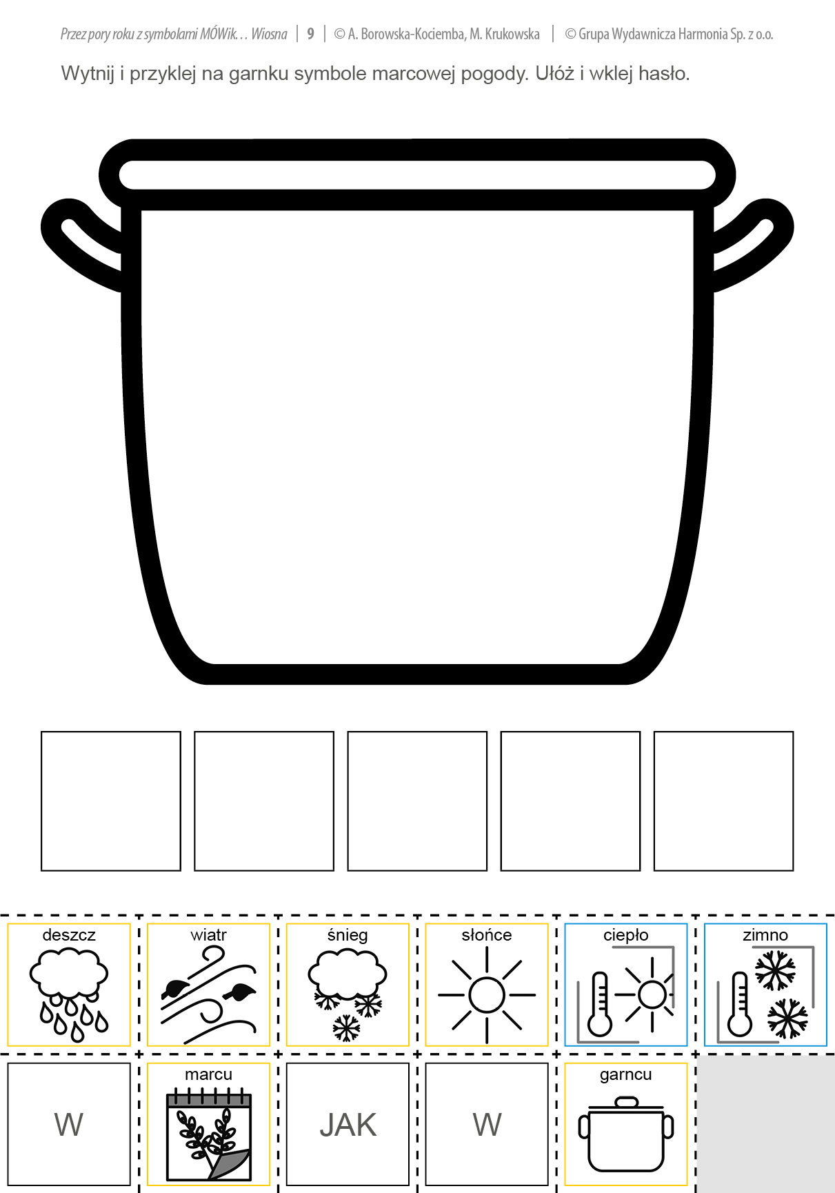 „Przez pory roku…” to propozycja pomocy dydaktycznej dla pedagogów i terapeutów pracujących z uczniami z niepełnosprawnością intelektualną, niepełnosprawnością sprzężoną oraz autyzmem. Prezentowane treści zostały wzbogacone symbolami MÓWik, co zwiększa grupę odbiorców kart o uczniów z zaburzeniami w komunikowaniu się. Publikacja może mieć zastosowanie jako pomoc dydaktyczna w placówkach edukacyjnych, a także w domu jako materiał wspomagający dla rodziców. Przeznaczona jest do pracy na wszystkich etapach edukacji w klasach integracyjnych, oddziałach edukacyjno-terapeutycznych, podczas zajęć rewalidacyjnych oraz zajęć rozwijających komunikację.